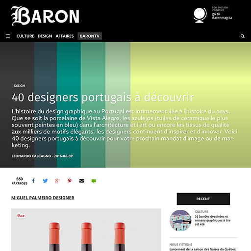 A canadiana Baronmag considera a MIGUEL PALMEIRO DESIGNER, um dos 40 designers portugueses a descobrir. +