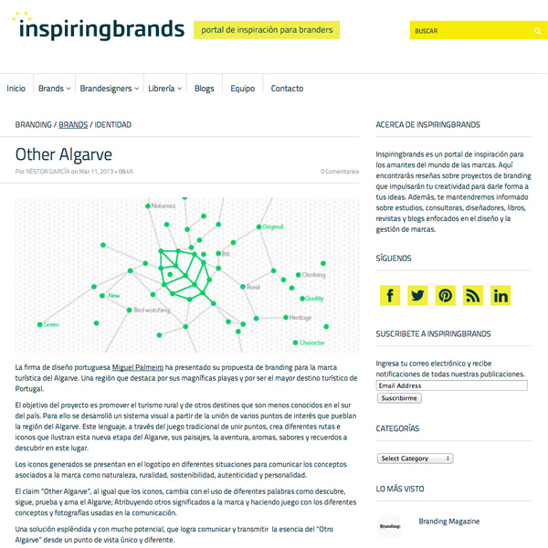 A proposta para a identidade "Other Algarve / Um Outro Algarve" publicada no Portal "Inspiringbrands". +